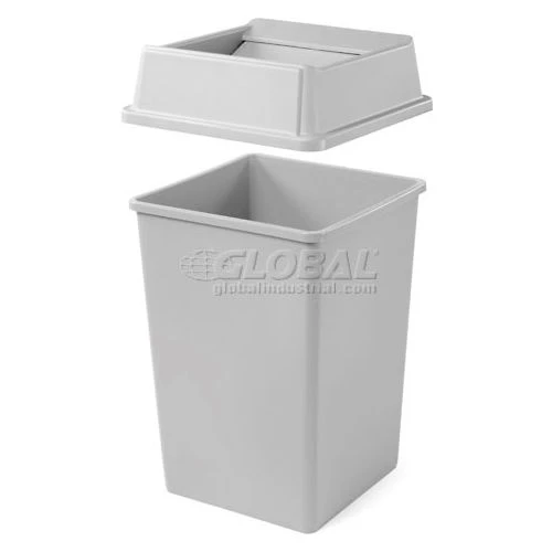 The optional lid, sold separately, features a swing door that allows trash to drop into the waste receptacle without hand contact while controlling insects and odors.
