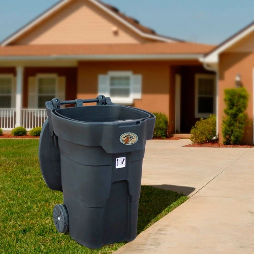 This 65 gallon FULLY automated Bear Resistant attractive curbside refuse garbage can is one of the only bear resistant garbage cans that automatically opens when the hauler tips the can using their automated trucks. The lid will pop open without the driver having to leave his truck or for the homeowner to leave the lid unlocked on trash service day. This 95 gallon automated bear resistant curbside refuse and garbage can is a cost-effective solution for neighborhood community residents looking to bear-proof their waste-management programs.