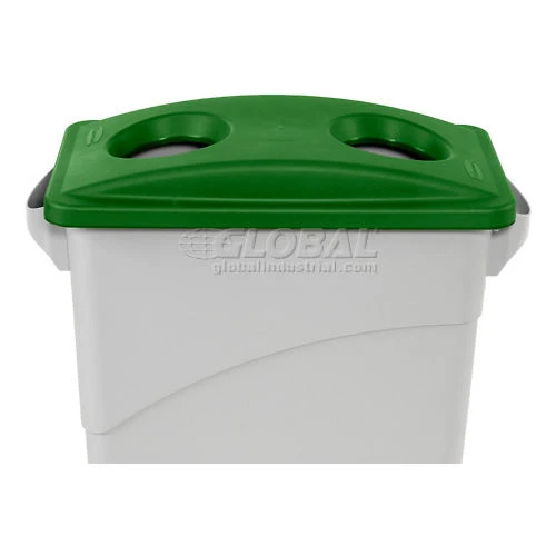 This lid features 2 round openings to accommodate recyclable bottles and cans while keeping out non recyclable waste. Eliminates the need for messy sorting. Durable plastic construction is long lasting. Lid fits both the 16 and 23 gallon containers (sold separately).