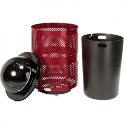 Global Industrial Outdoor Perforated Steel Trash Can With Dome Lid & Base, 36 Gallon, Red