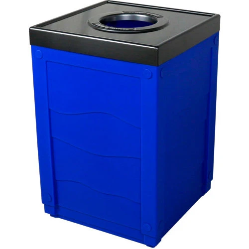 Commercial Zone PolyTec Square Waste Container w/Dome Lid – Blue w/Ashtone Stone Panels, 42-Gallon