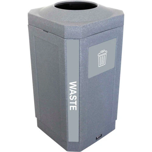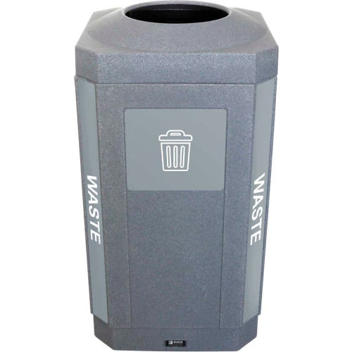Commercial Zone PolyTec Open Top Hex Waste Container, Black, 45-Gallon