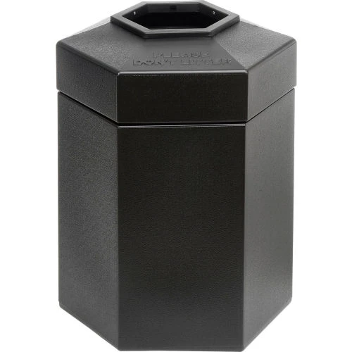 Commercial Zone PolyTec Open Top Hex Waste Container, Black, 45-Gallon