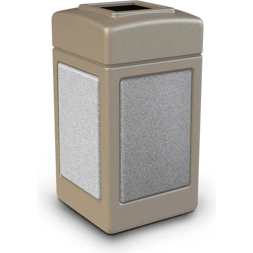 Commercial Zone PolyTec Square Waste Container, Beige with Ashtone Stone Panels, 42-Gallon
