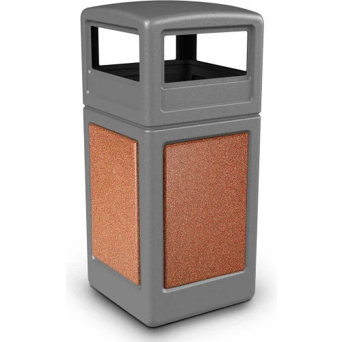 Commercial Zone PolyTec Square Waste Container with Dome Lid, Gray with Sedona Stone Panels, 42-Gallon