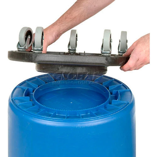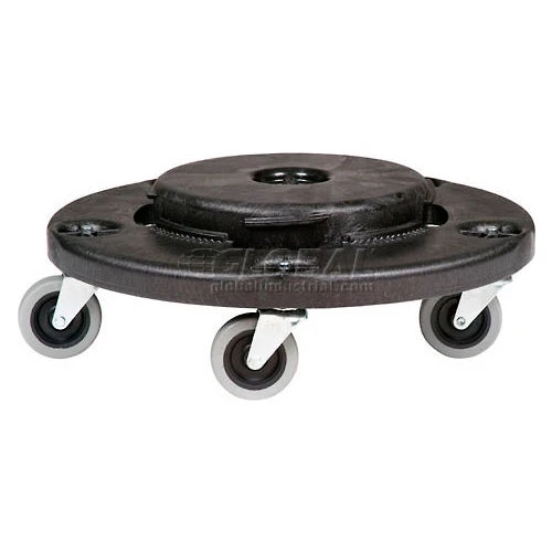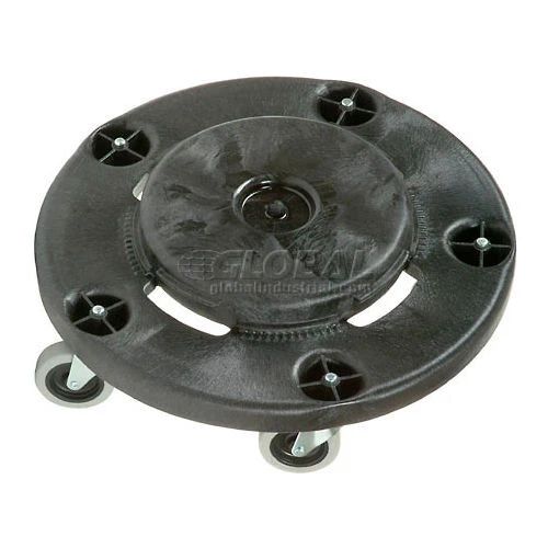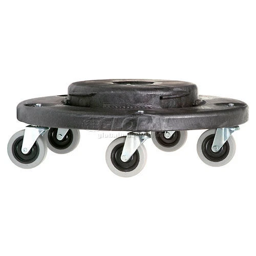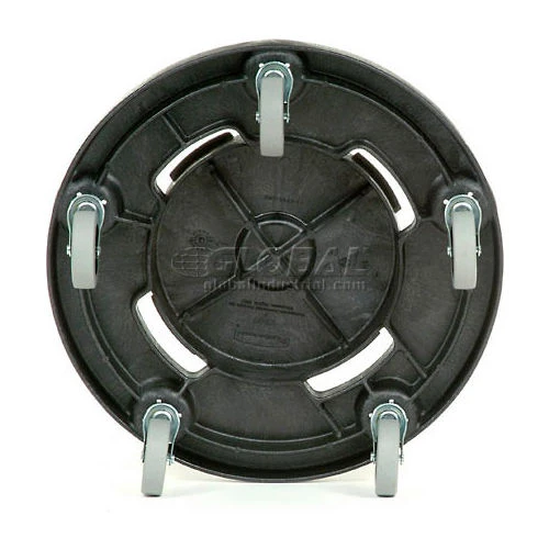 This dolly with five 3″ swivel casters helps Rubbermaid Brute containers maneuver without lifting. Locks onto container bottom for easy assembly. 250 lb. capacity. Black structural foam construction. Price is each. Sold in quantities of 1.