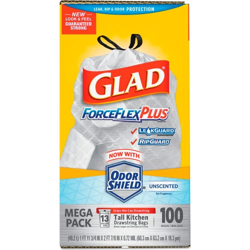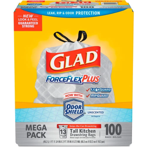 Glad® ForceFlex Tall Kitchen Drawstring Trash Bags feature ForceFlex® technology to handle the most demanding kitchen trash jobs.