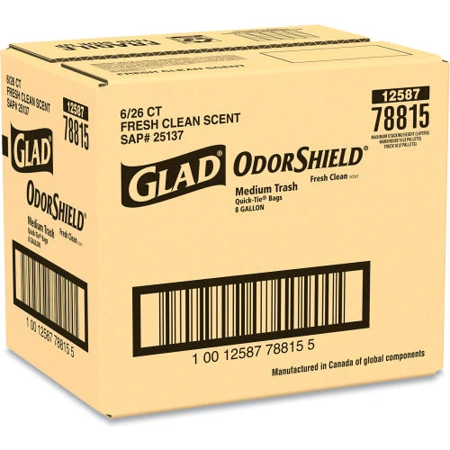 SKU: Glad WBB2686358 Categories: General Purpose, Trash & Recycling, Trash Bags Tags: 156, 8 gal, Glad, Janitorial & Facility Maintenance, Medium Duty, OdorShield Medium Quick-Tie Trash Bags, Plastic, White