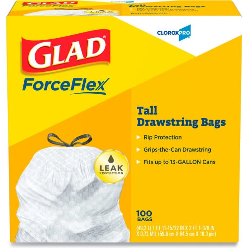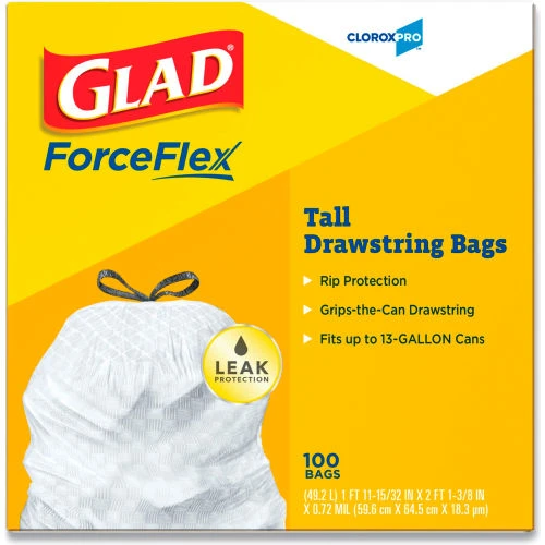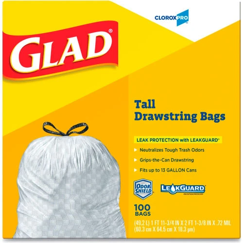 Be the first to review “Glad® Tall Kitchen Drawstring Trash Bags, 13 Gal, 0.72 mil, 24" x 27.38", Gray, 400/Case” Cancel reply