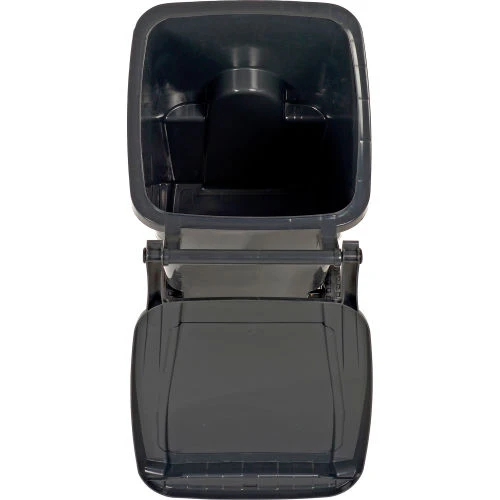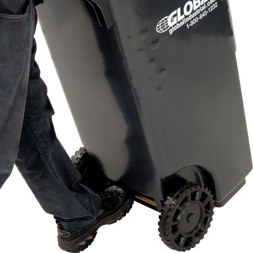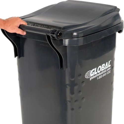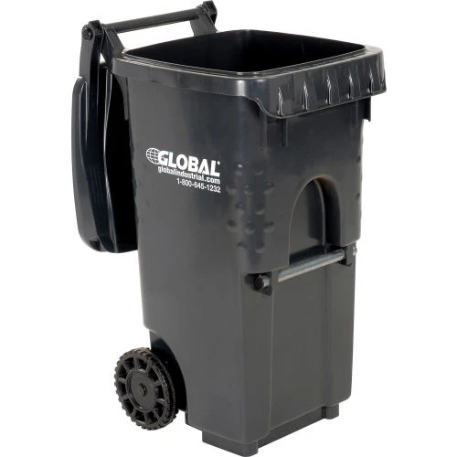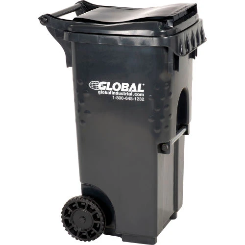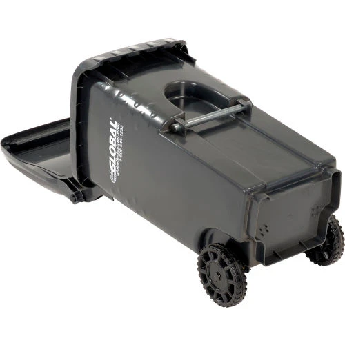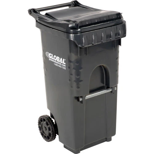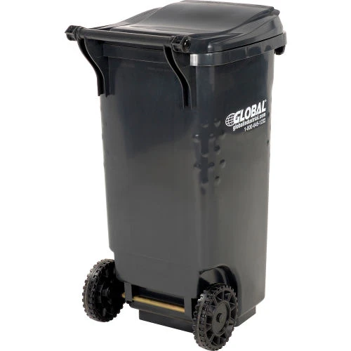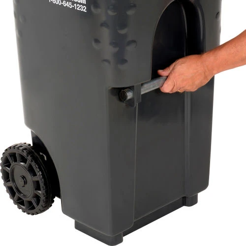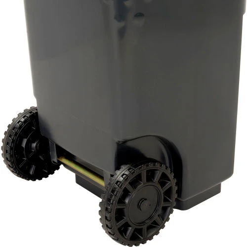 Commercial grade two wheel solid waste or recycling gray cart 35 gallon in volume.