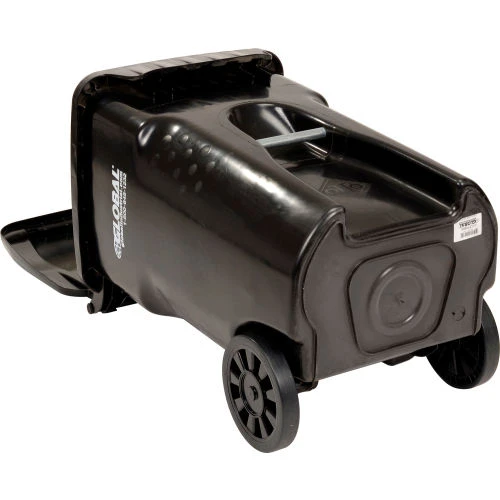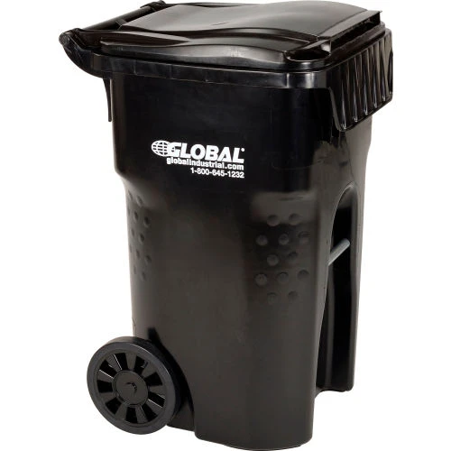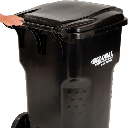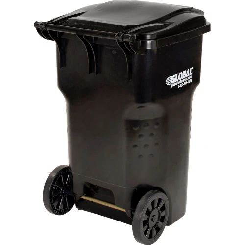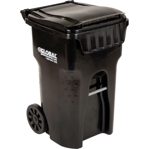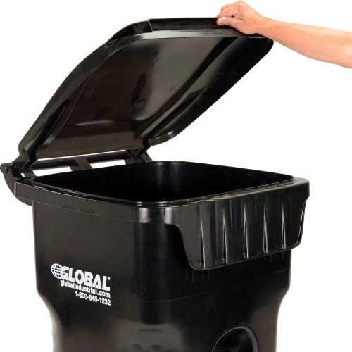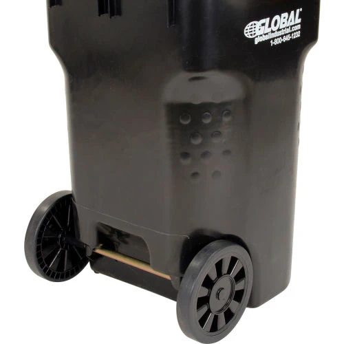 Mobile waste containers feature watertight construction to eliminate leaking and reduce odors. Made using high-density polyethylene that is injection molded with integral handles, a reinforced rim and wear ridges that protect and strengthen the bottom. Strong walls increase durability and withstand winds up to 40 mph. Attached lid conceals contents and retains odors while keeping out rain and snow. Molded recess on base allows easy tilting on its axle for tilt and roll mobility, also provides a convenient lift handle on the base. Trash cans features lifting pockets that are compatible with automatic arm lifters and semi-automatic bar lifters. Features two 10″ diameter wheels on a solid steel axle.
