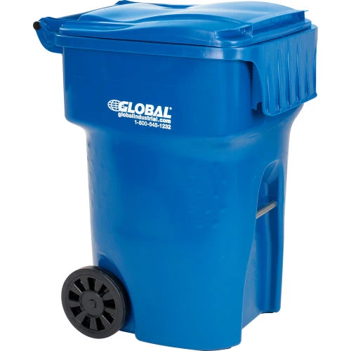 Mobile waste containers feature watertight construction to eliminate leaking and reduce odors. Made using high-density polyethylene that is injection molded with integral handles, a reinforced rim and wear ridges that protect and strengthen the bottom. Strong walls increase durability and withstand winds up to 40 mph. Attached lid conceals contents and retains odors while keeping out rain and snow. Molded recess on base allows easy tilting on its axle for tilt and roll mobility, also provides a convenient lift handle on the base. Trash cans features lifting pockets that are compatible with automatic arm lifters and semi-automatic bar lifters. Features two 10″ diameter wheels on a solid steel axle.
