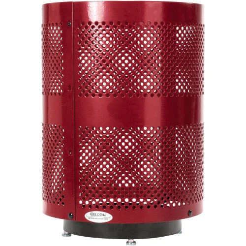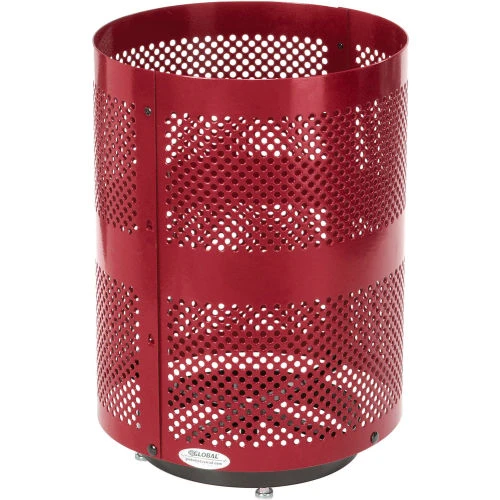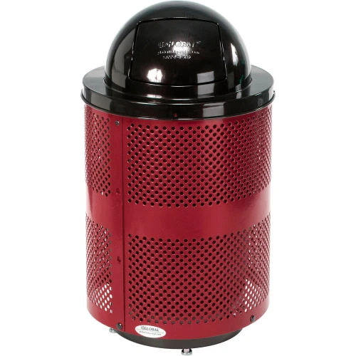 Global Industrial Outdoor Perforated Steel Trash Can With Dome Lid & Base, 36 Gallon, Red