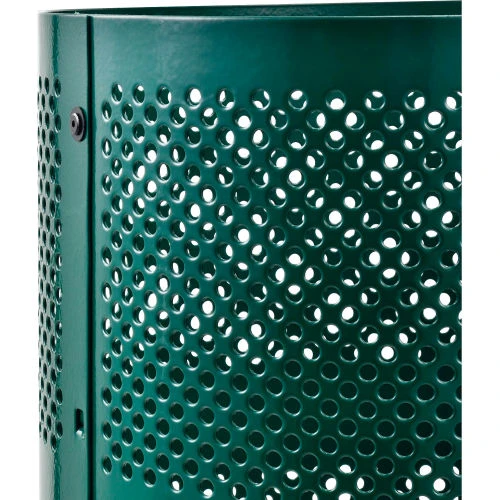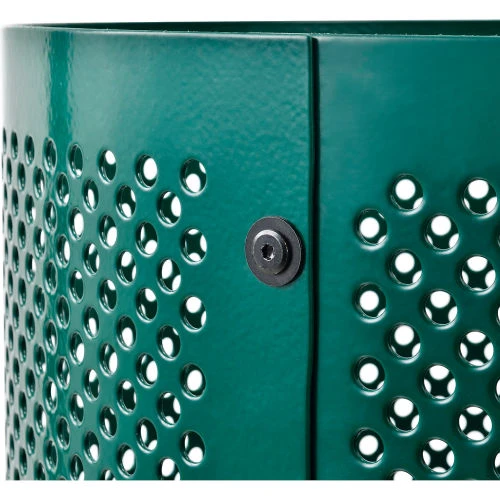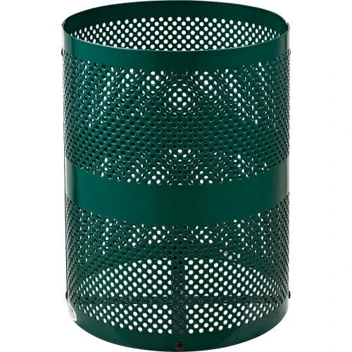 Global Industrial Outdoor Perforated Steel Trash Can With Rain Bonnet Lid, 36 Gallon, Green