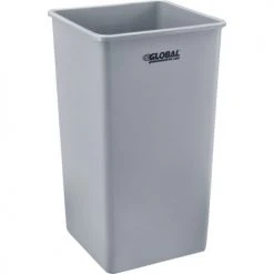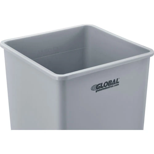 Global Industrial Square Plastic Trash Containers are lightweight yet durable to withstand indoor or outdoor use. Rugged plastic receptacle is easy to clean, and resists corrosion, dents and cracks. Use with swing lid 641441GY (sold separately) to help control odors and pests. 55 gallon capacity. Gray color finish.