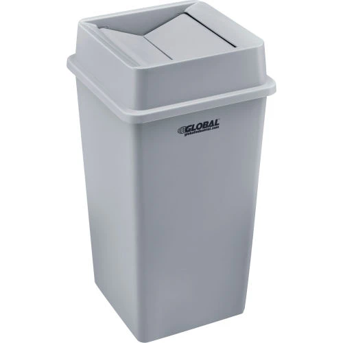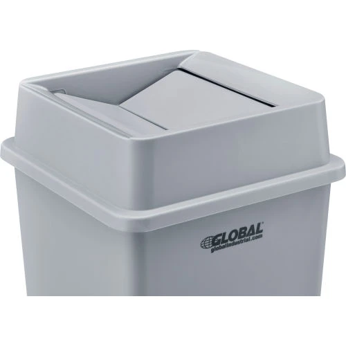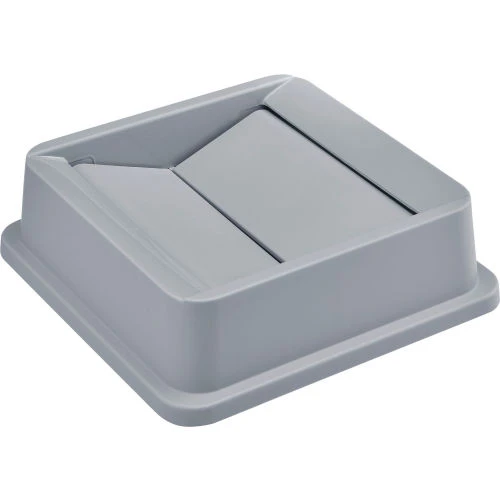 Global Industrial Square Plastic Trash Containers Swing Lid helps contain odors and pests when used with Global Industrial Square 35 and 55 Gallon Plastic Trash Containers (sold separately). Swing lid is constructed of durable plastic that is easy to clean and resists corrosion, dents and cracks. The self-closing swing doors allow for trash to be dropped into the receptacle without hand contact. Gray color finish. For use with Global Industrial Square 35 and 55 Gallon Plastic Trash Containers.