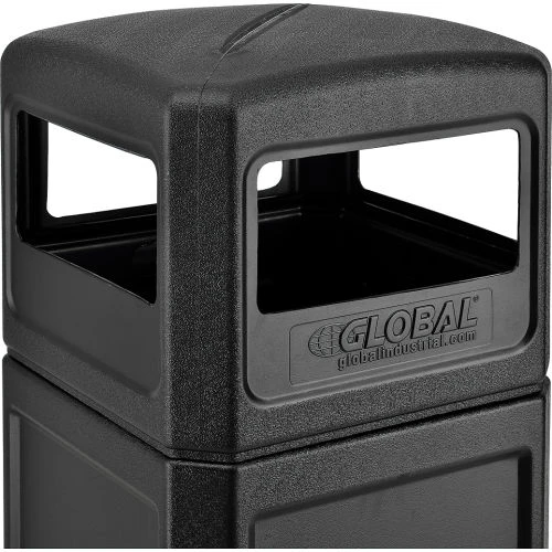 Global Industrial Square Plastic Waste Receptacle With Dome Lid, 42 Gallon, Black