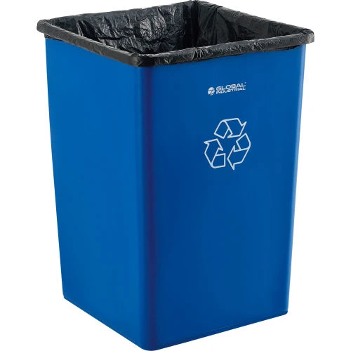 Designed to support cleaner, more sustainable environments, this trash container can be used to recycle paper products near copiers and mailrooms, but easily accepts bottles and cans with the compatible Global Industrial Plastic Trash Container Bottle & Can Recycling Lid 641441RBL (sold separately). 1 Year Standard Warranty. 27-4/5″ H x 19-1/2″ L x 19-1/2″ W.