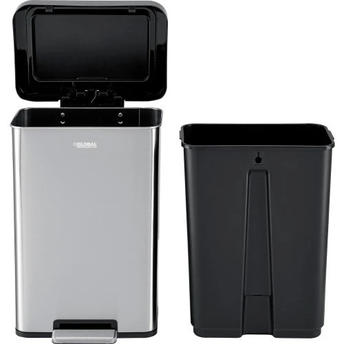 Global Industrial Stainless Steel Rectangular Step Trash Can – 12 Gallon