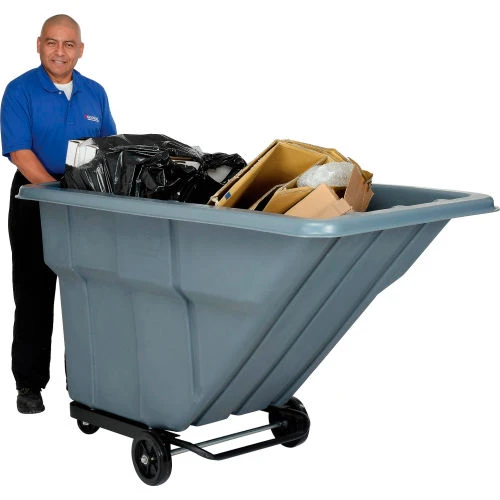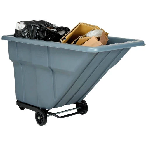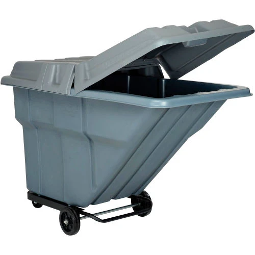 Global Industrial Standard Duty Plastic Tilt Truck, 1 Cu. Yd. Cap,1000 Lbs. Cap, Gray