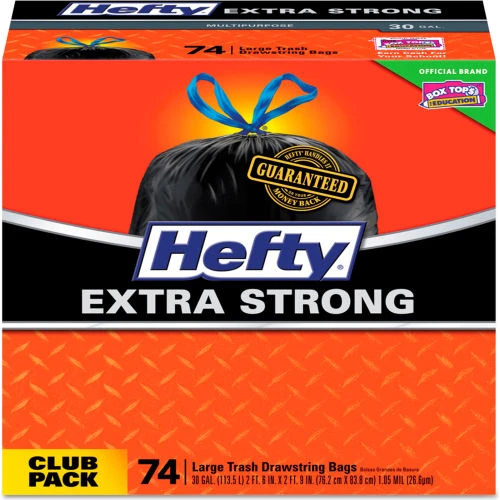 Be the first to review “Hefty® Ultra Strong Tall Kitchen and Trash Bags, 30 Gal, 1.1 mil, 30" x 33", Black, 74/Box” Cancel reply