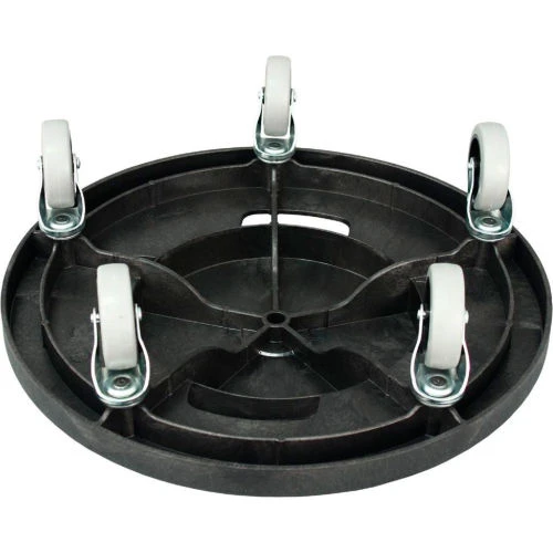 Gator® Dolly. Structural foam molded, extremely durable. Five 3″ swivel casters, extremely stable. Securely attaches to 20, 32, 44, and 55-gal. Gator® containers and competitors. Vented to keep from suctioning to container.