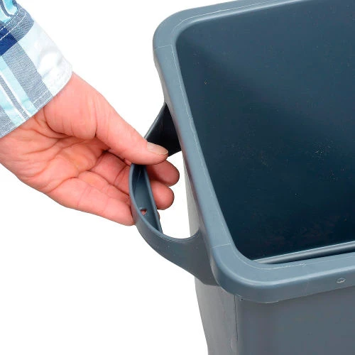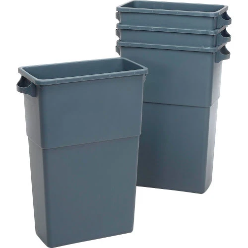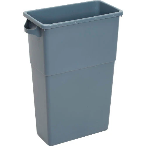 23-Gal. Thin Bin Containers and Lids. High capacity container designed for tight places. Convenient ergonomic designed handles. Recessed hand grips molded into bottom for easy emptying. Textured finish outside for attractive, commercial look. Smooth inside surface for easy cleaning. Constructed of durable polyethylene blend. Swingtop lids sold separately.