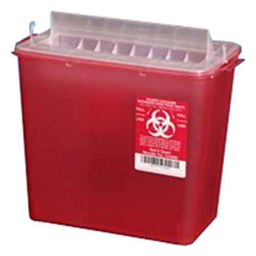 The 5 Qt. Sharps Container can be used with Locking Wall Mounted Sharps Disposal System (Model# 143002). The automatic rotating chamber is designed to safely deposit sharps into the puncture resistant container. Meets U.S. Federal and State OSHA requirements.