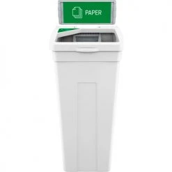 Busch Systems® Rise Single Paper Waste Container W/ Signage, 13-11/16"Wx12-7/8"Dx27-1/2"H,White