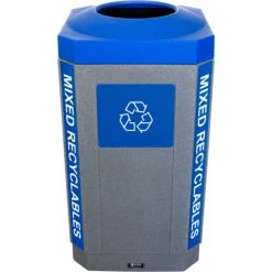 Busch Systems Indoor Octo Container – Mixed Recyclables, 32 Gallon – Graystone/Blue – 104452