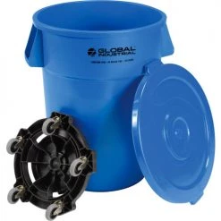 Global Industrial Plastic Trash Can with Lid & Dolly – 44 Gallon Blue