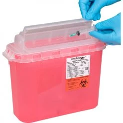 Oakridge Products 5.4 Quart Sharps Container w/ Counter Balance Lid, Red