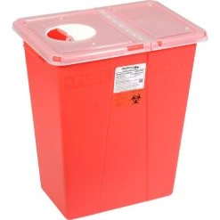 Covidien Biohazard Sharps Container with Hinged Lid, 8-Gallon Capacity, Red