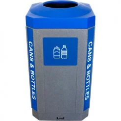 Busch Systems Indoor Octo Container – Cans & Bottles, 32 Gallon – Graystone/Blue – 104451