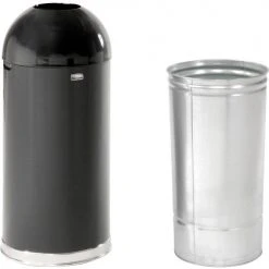 Rubbermaid® Steel Round Open Top Trash Can W/Galvanized Liner, 15 Gallon, High Gloss Black