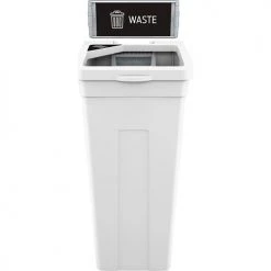 Busch Systems® Rise Single Waste Container W/ Signage, 13-11/16"W x 12-7/8"D x 27-1/2"H, White