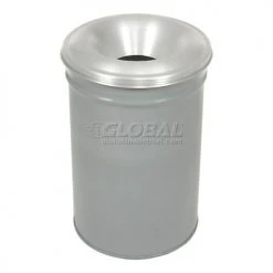 Justrite Cease-Fire® Steel Round Trash Can W/Funnel Lid, 55 Gallon, Gray