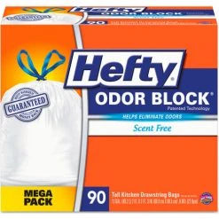 Hefty® Strong Tall Kitchen Drawstring Trash Bags – White, 13 Gal, 0.9 Mil, 90/Box -RFPE84574