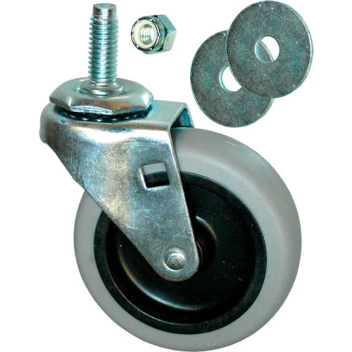 3″ swivel stem caster with hardware. Includes (1) swivel caster, (2) washers (1) 3/8″ self-locking nut. Fits Rubbermaid® 498581BK