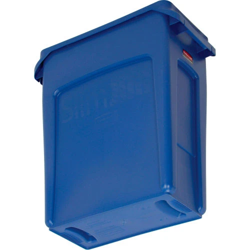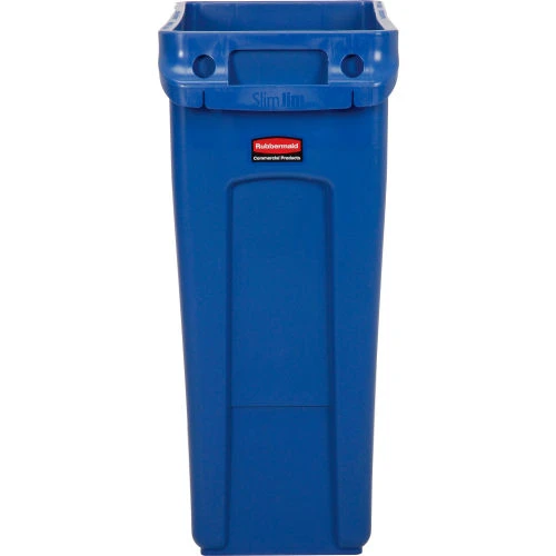 This recycling container space saving profile fits virtually anywhere. Rubbermaid Slim Jim® container features venting channels that make removing liners up to 80% easier, improving productivity and reducing the risk of worker injury. Includes bag cinches to secure liners around the rim of the container and allow for quick, knot-free liner changes. Base and rim handles improve grip and control while lifting and emptying full containers. Long lasting durable plastic construction resists dents, cracks and corrosion. Lids sold separately.
