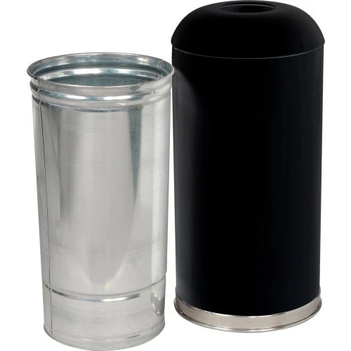 Rubbermaid® Steel Round Open Top Trash Can W/Galvanized Liner, 15 Gallon, High Gloss Black