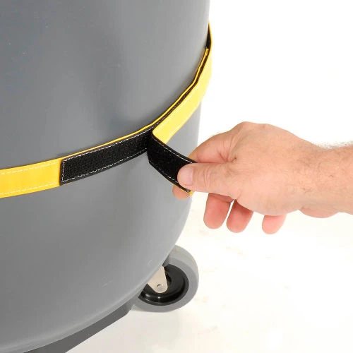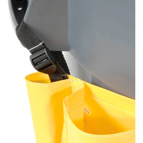 Fits 28 and 40 gallon square containers and 32 and 44 gallon round containers. Holds quart spray bottles, paper towels, sponges, brushes and more. Rubbermaid puts your cleaning supplies on wheels to provide an economical alternative to a cleaning cart.