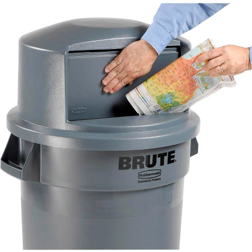 Dome lid converts Rubbermaid Brute containers into an outdoor waste receptacle. The hard wearing polyethylene resin construction of these waste receptacle lids ensures strength, stability and long term use and withstands weather and steam cleaning. USDA compliant and NSF listed.