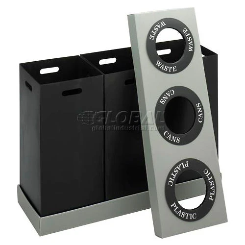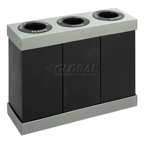 Safco® Recycling Center For Plastic/Cans/Waste, 84 Gallon, Black/Gray