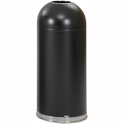 Safco® Steel Round Dome Top Trash Can W/Galvanized Liner, 15 Gallon, Black