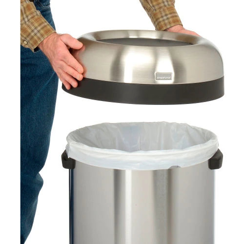 simplehuman’s bullet open can has a 10.5-inch opening that makes it easy to scrape food off trays or toss in large items like pizza boxes. The heavy-gauge stainless steel construction, lift-off lid and extra-large capacity make it an ideal choice for high-traffic commercial spaces such as hotel lobbies, restaurants and commissaries.