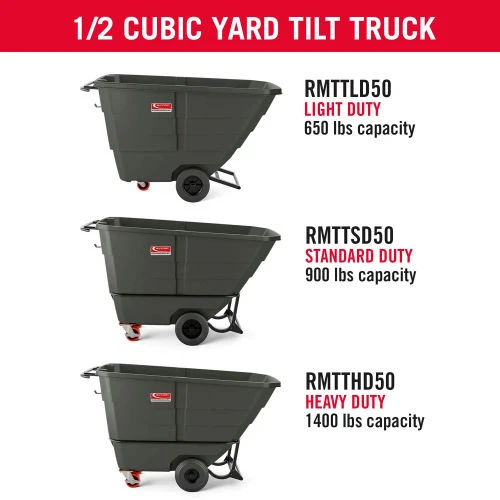 Suncast® Towable Standard Duty Plastic Tilt Truck, 1/2 Cu. Yd. Cap, 800 Lbs Cap,Gray