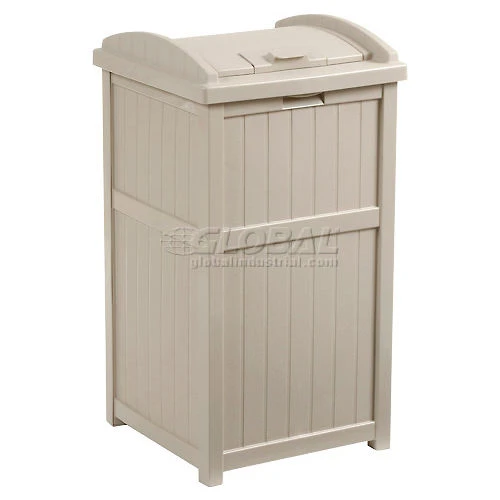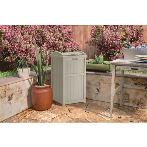 Suncast Plastic Square Trash Can Hideaway, 24 Gallon, Taupe