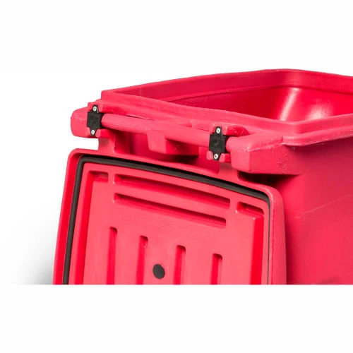 - Locking lid, with gasket, prevents unauthorized access and keeps hazardous waste securely contained