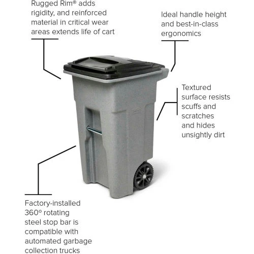 - Toter trash cans feature quiet-cap wheels to reduce noise when moving cans